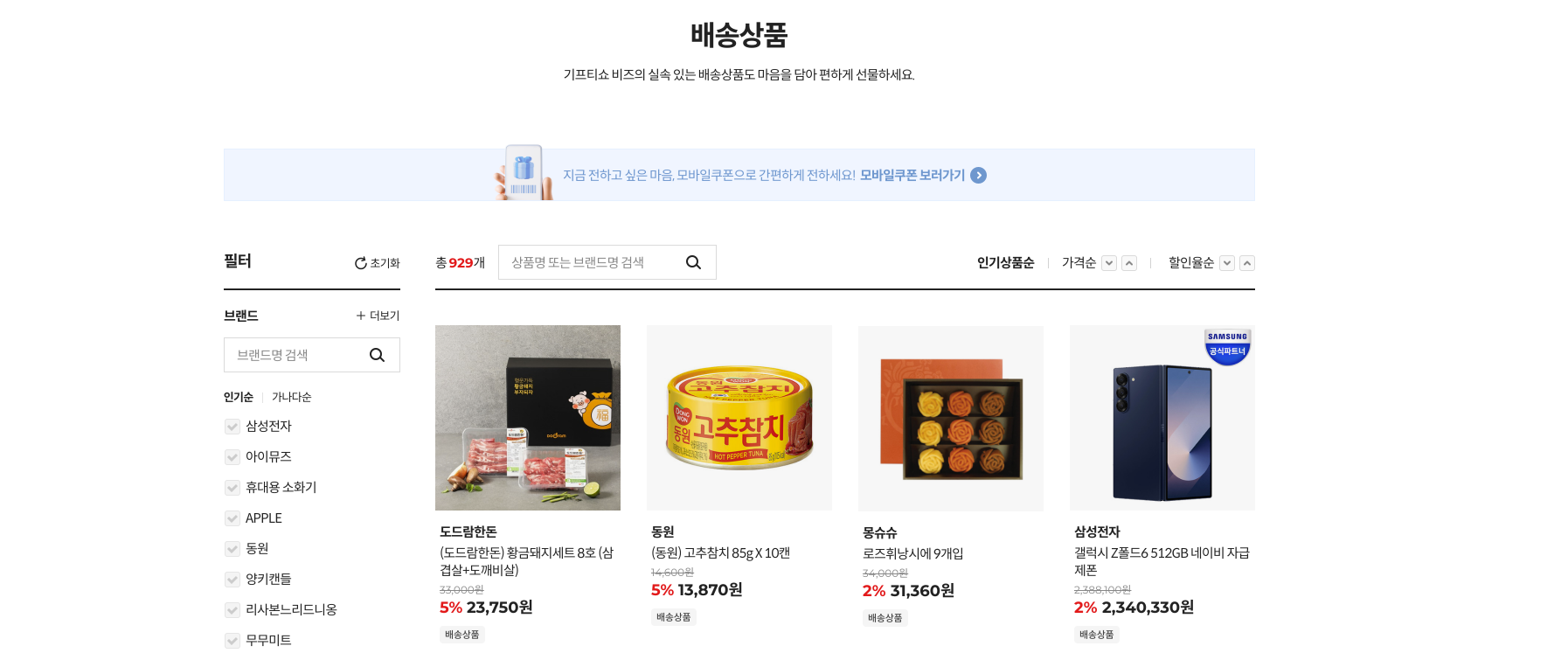 추석 선물, 모바일쿠폰만으로 아쉽다면? 직원 복지나 감사 선물용으로 활용할 수 있도록, 인기 배송상품 라인업을 한층 더 풍성하게 강화했어요.