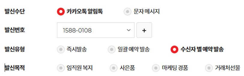 수신자별 예약 발송 시, 당일 발송도 가능하도록 포함되어 당일발송+예약발송이 동시에 가능하도록 개선되었어요!