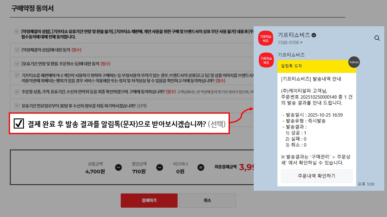 기업구매 할인: KT기프티쇼 비즈에서 구매하면 정가보다 최소 5%이상 저렴하게 구매 가능