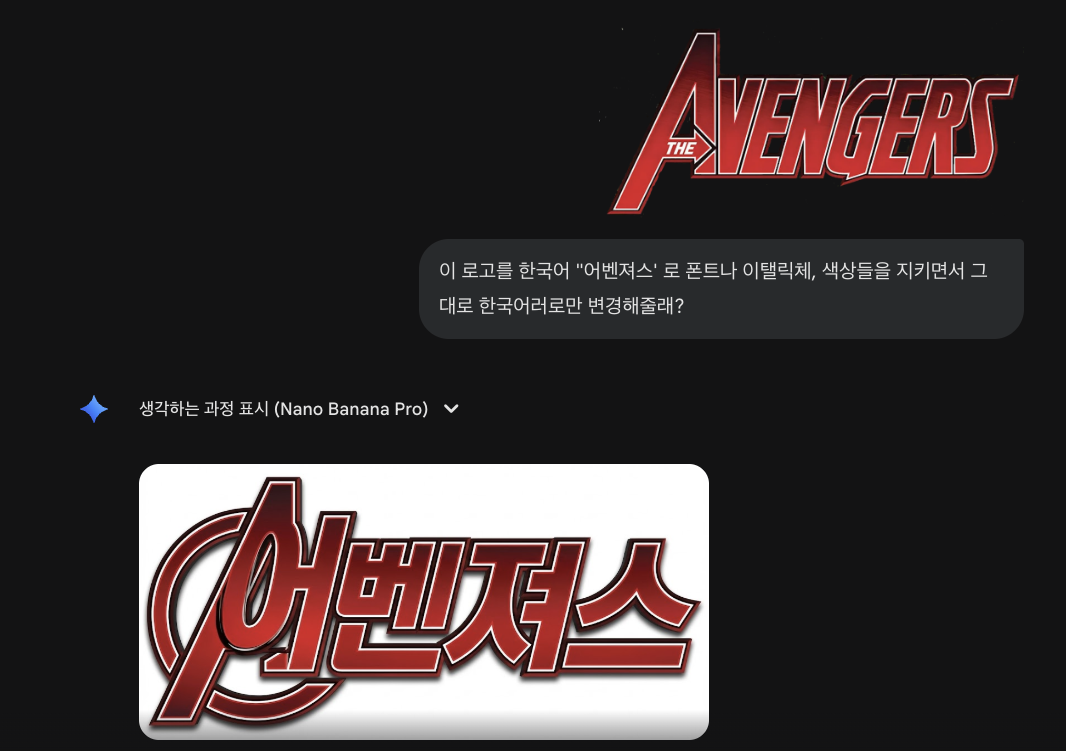 한국어로 변환하여 새로운 K-어벤져스 로고를 만들어줬어요.